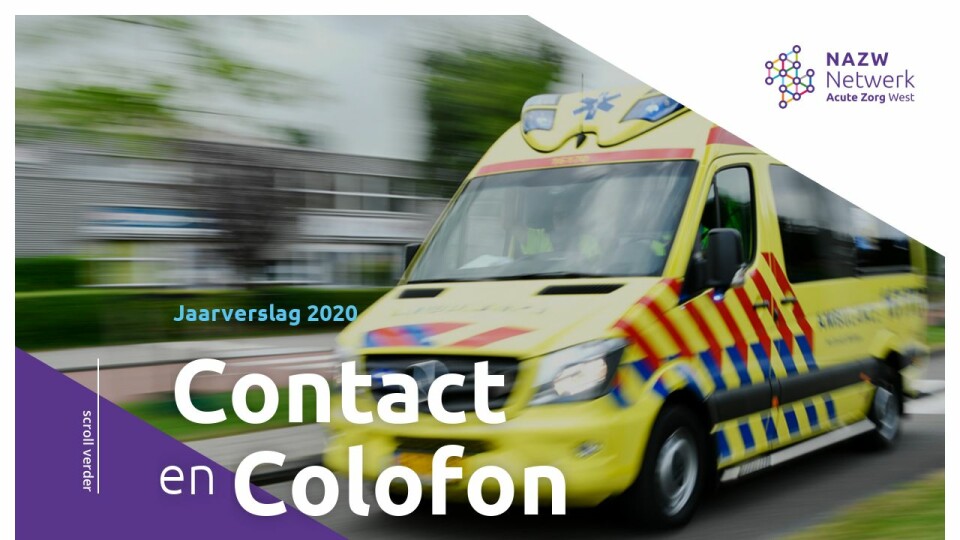 Dit digitale jaarverslag 2020 geeft een overzicht van de activiteiten en diensten van het Netwerk Acute Zorg West (Traumacentrum West, ROAZ en OTO), in samenwerking met de ketenpartners in regio Hollands Midden en Haaglanden.